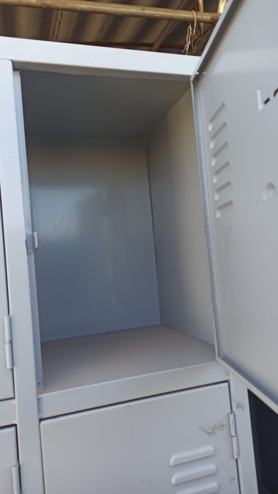 * Cada porta com venezianas para ventilação e suporte para cadeado